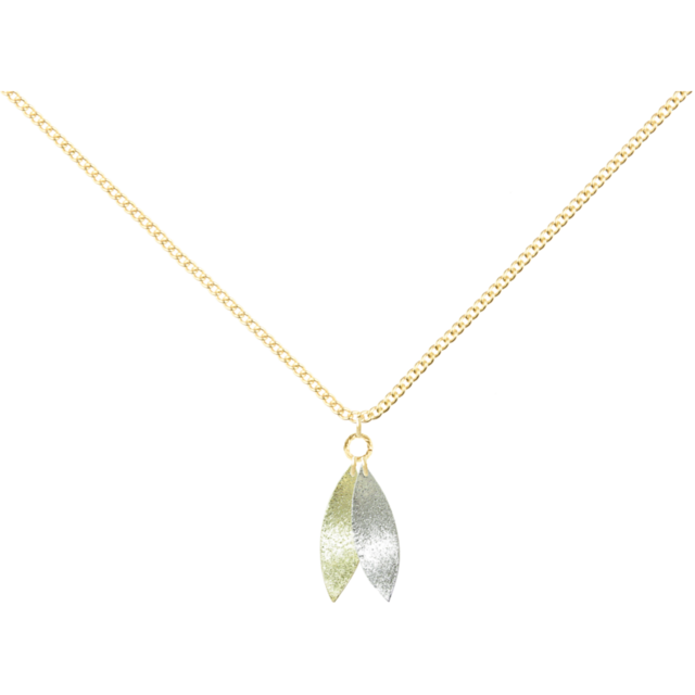 メタルオ-バ-シルバーとメタルオ-バ-ゴ-ルドが胸元で煌びやかさを演出する華やかなネックレスです。