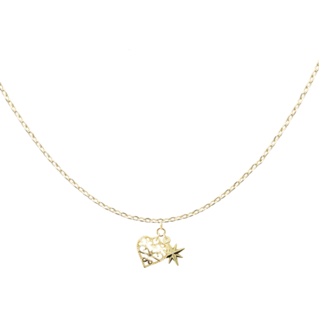透かしハ-トチャ-ムが煌びやかなシンプル華やかなネックレスです。