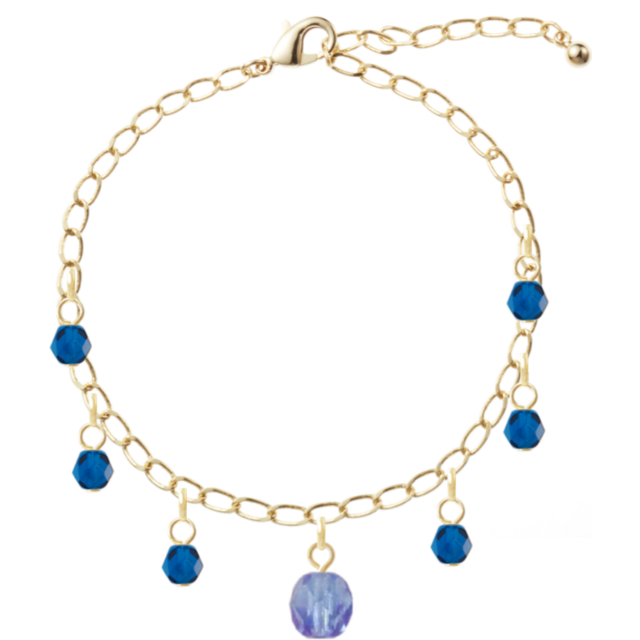チェコビーズカプリブルー4mmx6 チェコビーズサファイア 6mm x1 キヘイチェーンブレスレット 小x1 チェコビ-ズのブルーカラ-が煌びやかなシンプルエレガントなブレスレットです。