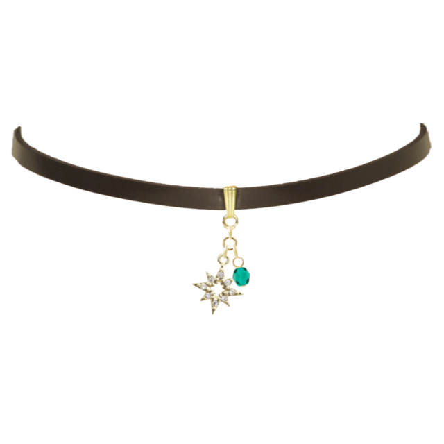 ラインストーンスターオ-プンスターとチェコビ-ズエメラルドが煌めくエレガントなチョ-カ-です。