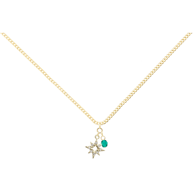 ラインストーンオ-プンスターとチェコビ-ズエメラルドが煌めくエレガントなネックレスです。