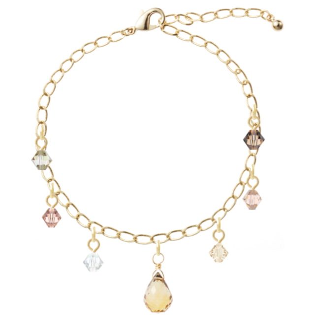 様々なスワロフスキーが揺れる可憐でキュ-トなブレスレットです。