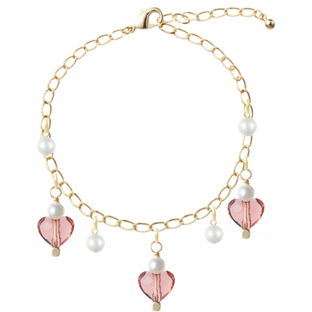 ハ-トのチャ-ムと樹脂パールが揺れるキュ-トなブレスレットです。