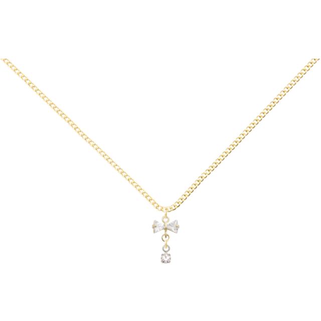 ラインストーンリボンチャ-ムとラインストーンブレシオサが揺れるシンプルキュ-トなネックレスです。