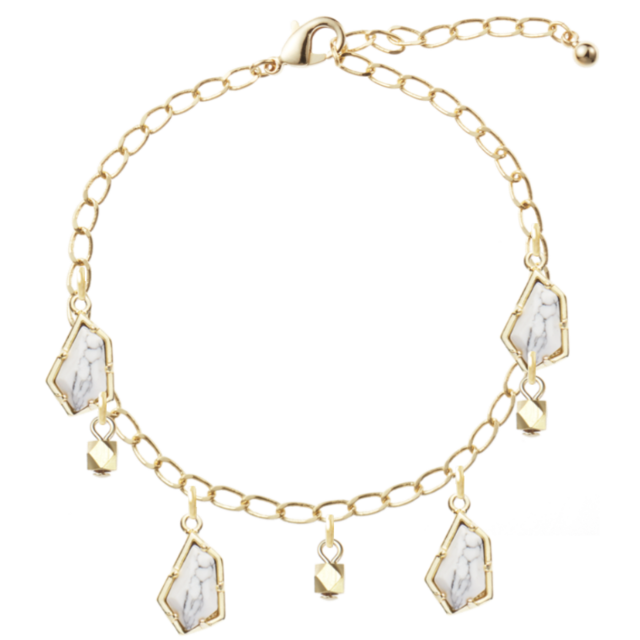メタルビーズ多角形x3 変形ペンタゴンパーツ ハウライトX4 キヘイチェーンブレスレット 小x1 シックなチャ-ムのシンプルエレガントなブレスレットです。