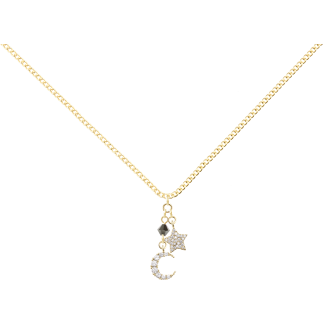 月と星のチャ-ムが煌びやかな、夜空に月と星が輝くイメージのネックレスです。