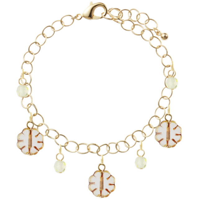 ポップなチャ-ムにチェコビ-ズジョンキルチャ-ムでエレガントさをプラスし、柔らかい春風をイメージしたブレスレットです。